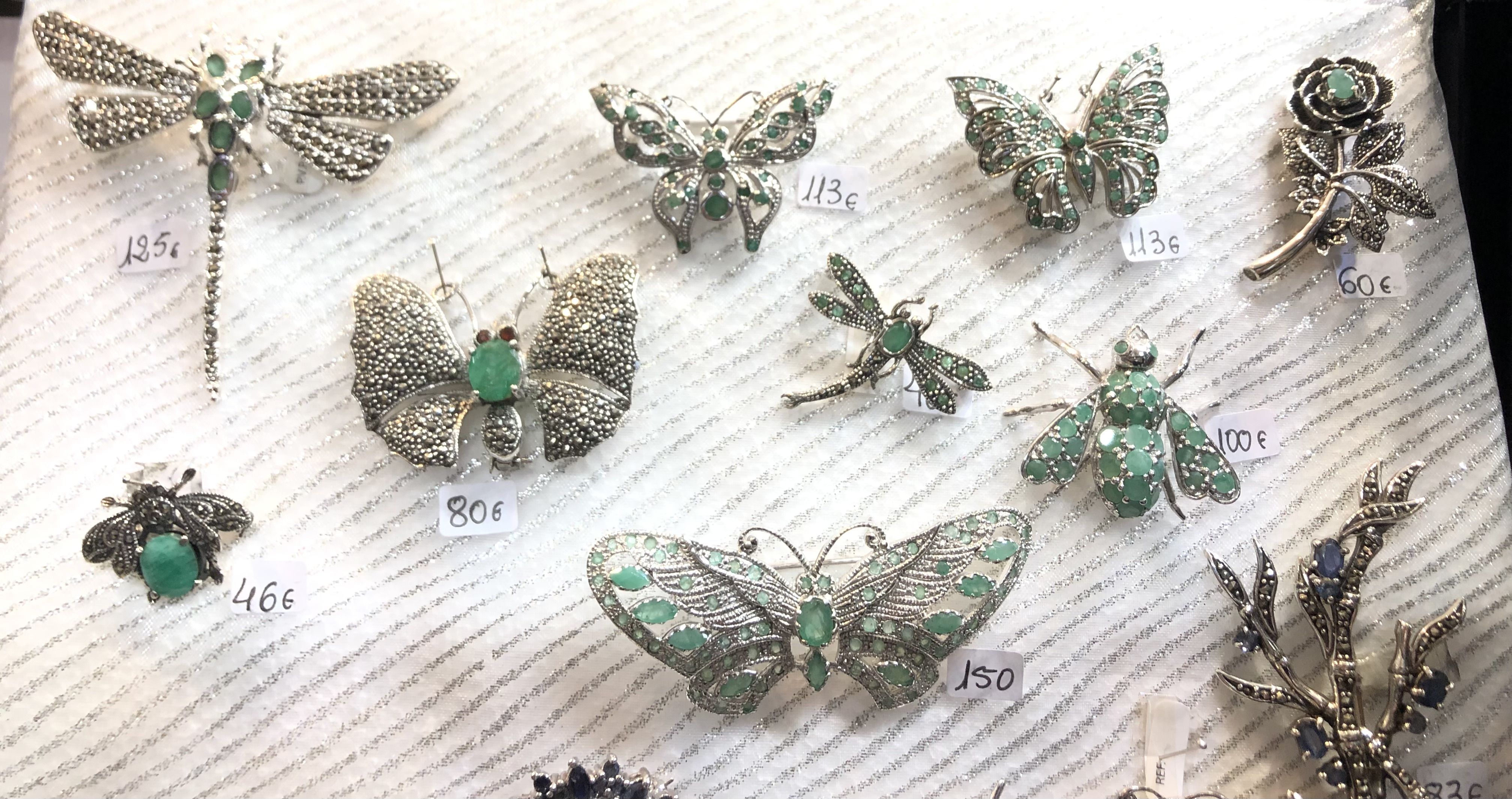 Broches de plata y esmeralda